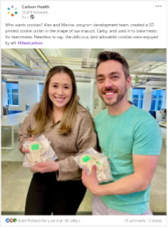 What’s a project or program you’re particularly proud of? | When Brent started at Carbon Health, there wasn’t much of an organic presence for employer brand messages on social media. He built a campaign calendar that includes space for 4-5 posts per week. If you review the channels now, you’ll see a steady stream of content on Carbon’s value and culture, spotlights on people, pushes for hiring needs and more. Actually, it’s impossible to miss.